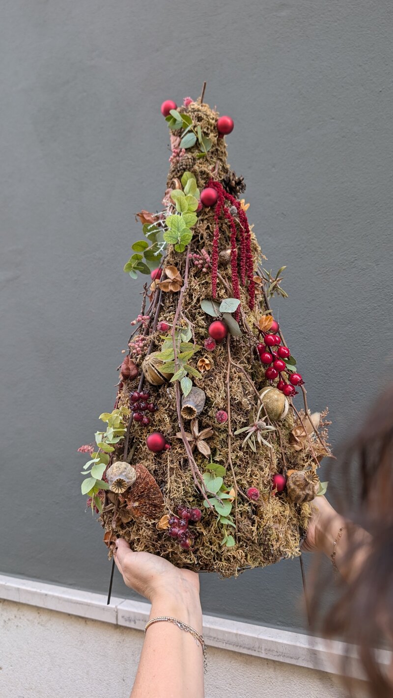 Realizzato a mano nel nostro laboratorio, questo mini alberello botanico è composto da vero muschio che abbiamo essiccato con cura per conservarne la bellezza naturale nel tempo. Ogni creazione è unica e arricchita con bacche, eucalipto, pignette e altri piccoli dettagli botanici selezionati uno a uno.